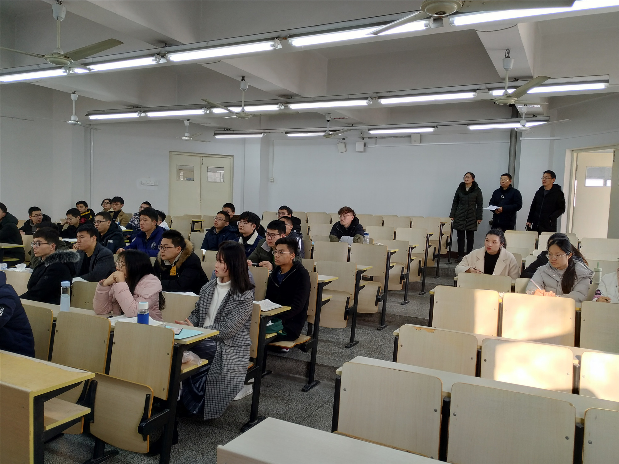 2019年2月25日上午,学院副经理黎文航、晏超,副书记赵莉,带队检查学院本科生、研究生教学情况。深入了解教师课前准备、课程目标与授课计划宣讲、授课方式、教学状态、教学效果等情况;深入了解员工到课率、抬头率、学习态度、学习效果等情况。