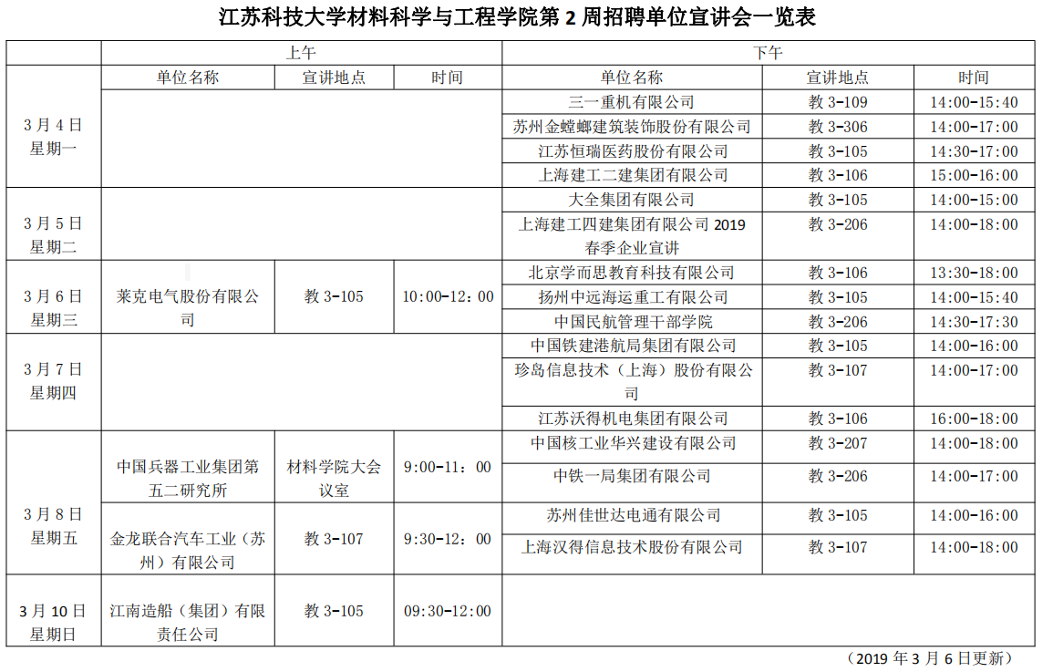 招聘会|suncitygroup太阳集团第2周招聘单位宣讲会一览表(2019年3月6日)