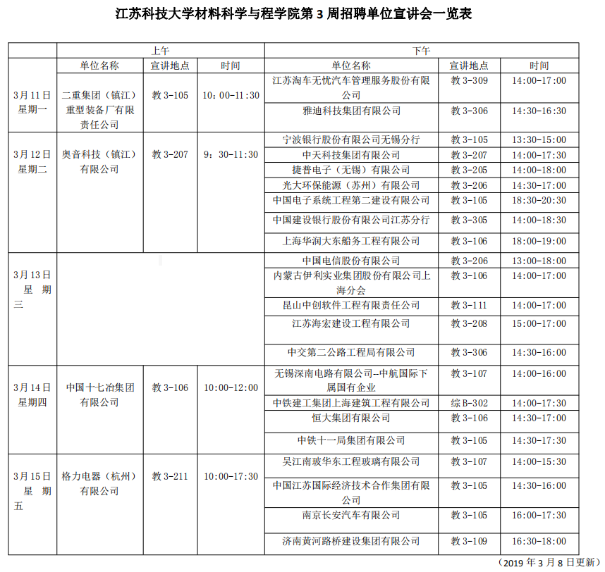 招聘会|suncitygroup太阳集团第3周招聘单位宣讲会一览表(2019年3月10日)