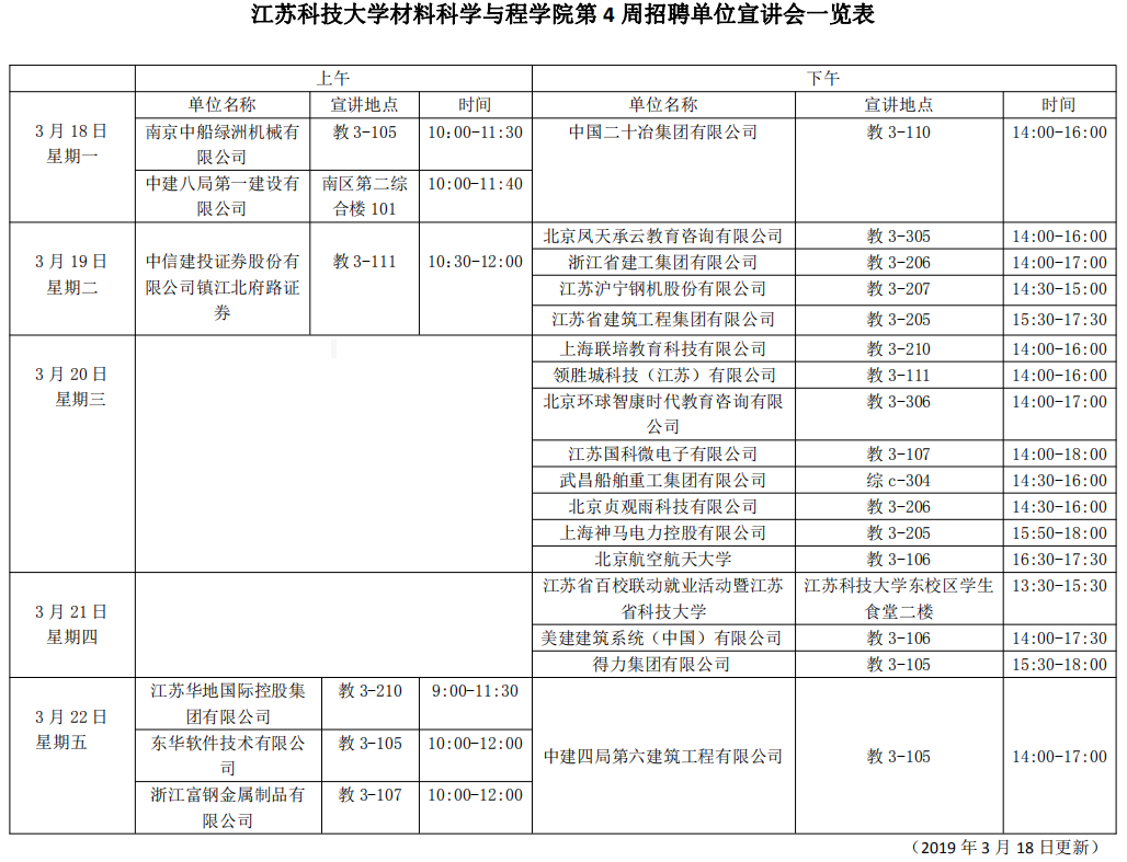 招聘会|suncitygroup太阳集团第4周招聘单位宣讲会一览表(2019年3月18日)