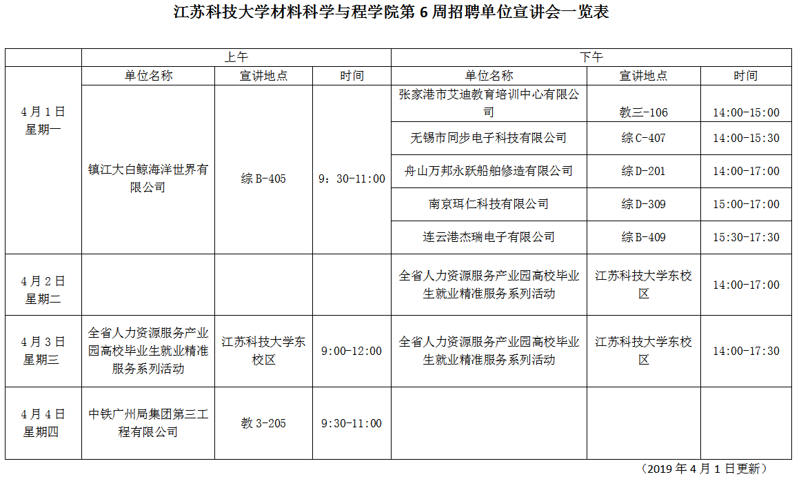 招聘会|suncitygroup太阳集团第6周招聘单位宣讲会一览表(2019年4月1日)