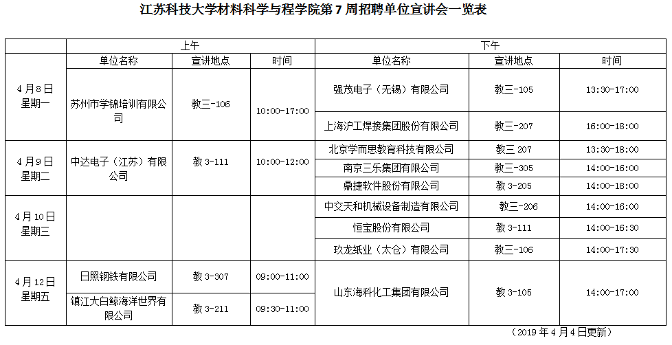 招聘会|suncitygroup太阳集团第7周招聘单位宣讲会一览表(2019年4月4日)