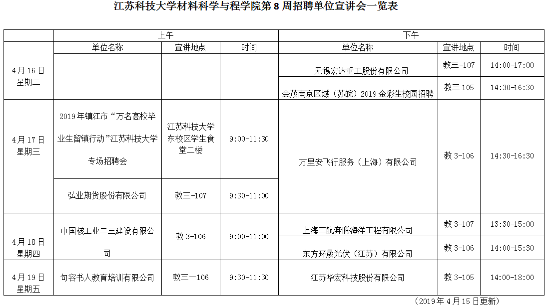 招聘会|suncitygroup太阳集团第8周招聘单位宣讲会一览表(2019年4月15日)