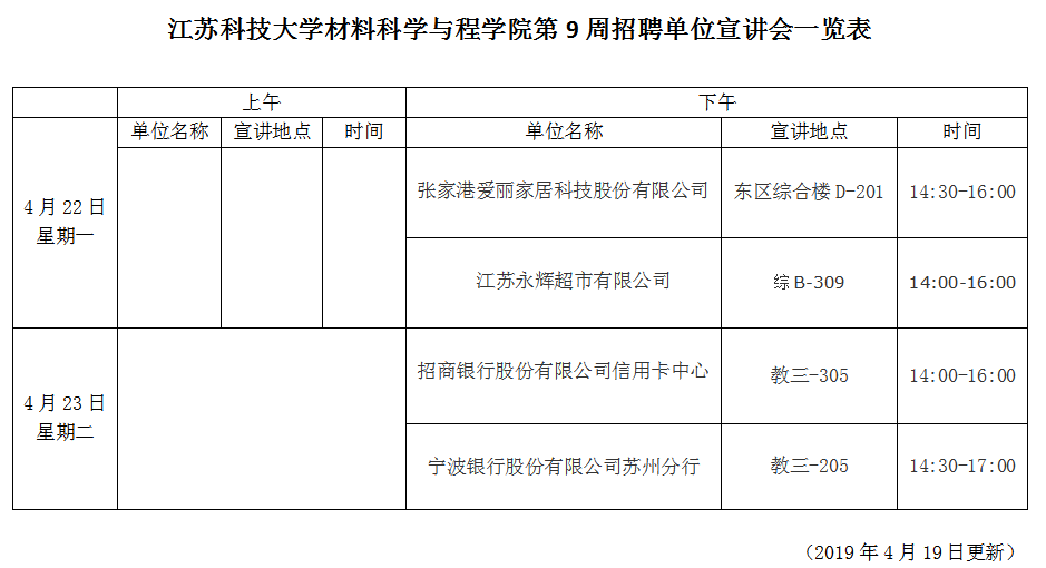 招聘会|suncitygroup太阳集团第9周招聘单位宣讲会一览表(2019年4月19日)