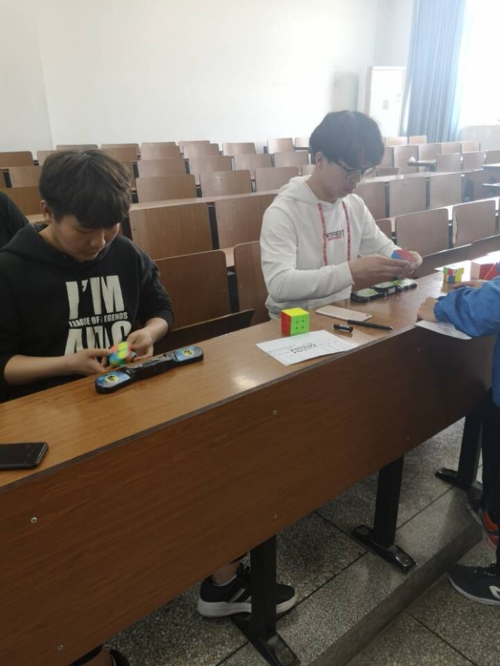 下午两点,各参赛队伍来到suncitygroup太阳集团西综322进行准备。比赛开始后,首先进行的是魔方三阶还原项目。比赛中各组的成员们不甘落后,你追我赶,教室里处处是成员们舞动指尖的声音。由主办方派出的郭凌云负责记录各组成员的成绩,保证比赛公平公正。随后依次进行的是二阶、四阶、五阶等项目。赛后,比赛成员们互相就魔方高阶的问题进行了讨论,这体现了竞技体育的拼搏与合作精神、增强了魔方爱好者们突破更高境界的信心。最后负责人给比赛中表现优异的成员颁奖并合影。