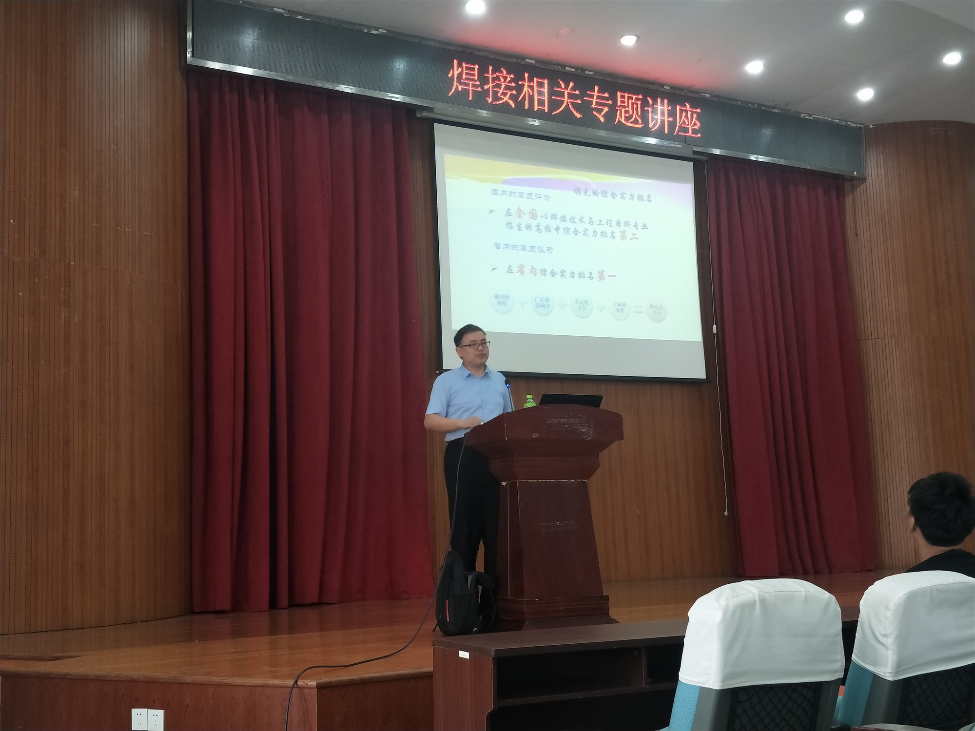 4月25日上午,suncitygroup太阳集团焊接及电子封装系副主任胡庆贤主任在西区学术报告厅给学子们带来了焊接专题知识讲座。