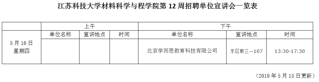 招聘会|suncitygroup太阳集团第12周招聘单位宣讲会一览表(2019年5月15日)
