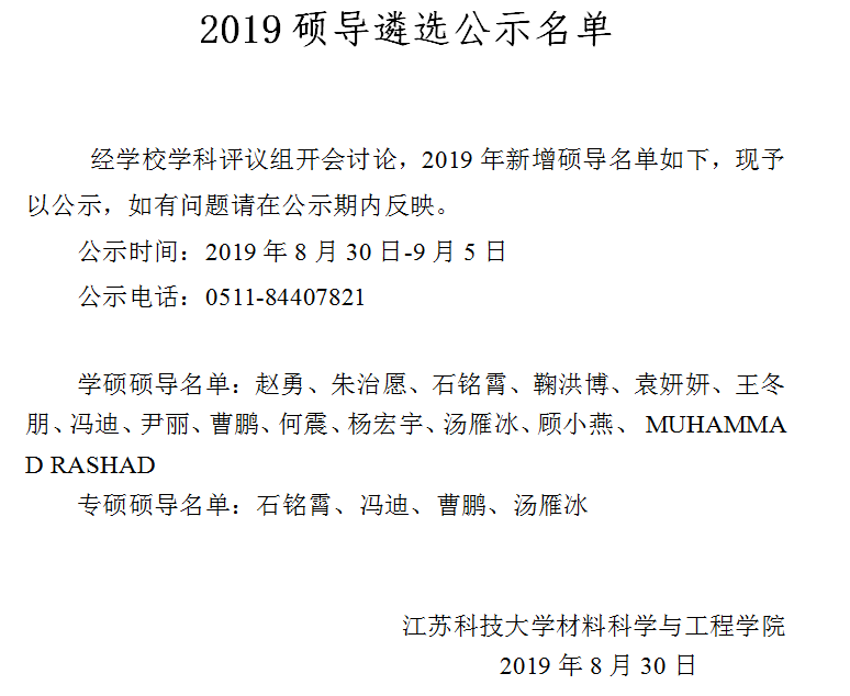 公示:suncitygroup太阳集团2019硕导遴选公示名单