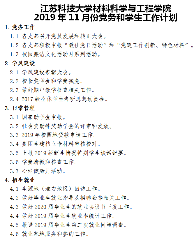 工作计划|2019年11月 党建、员工工作计划