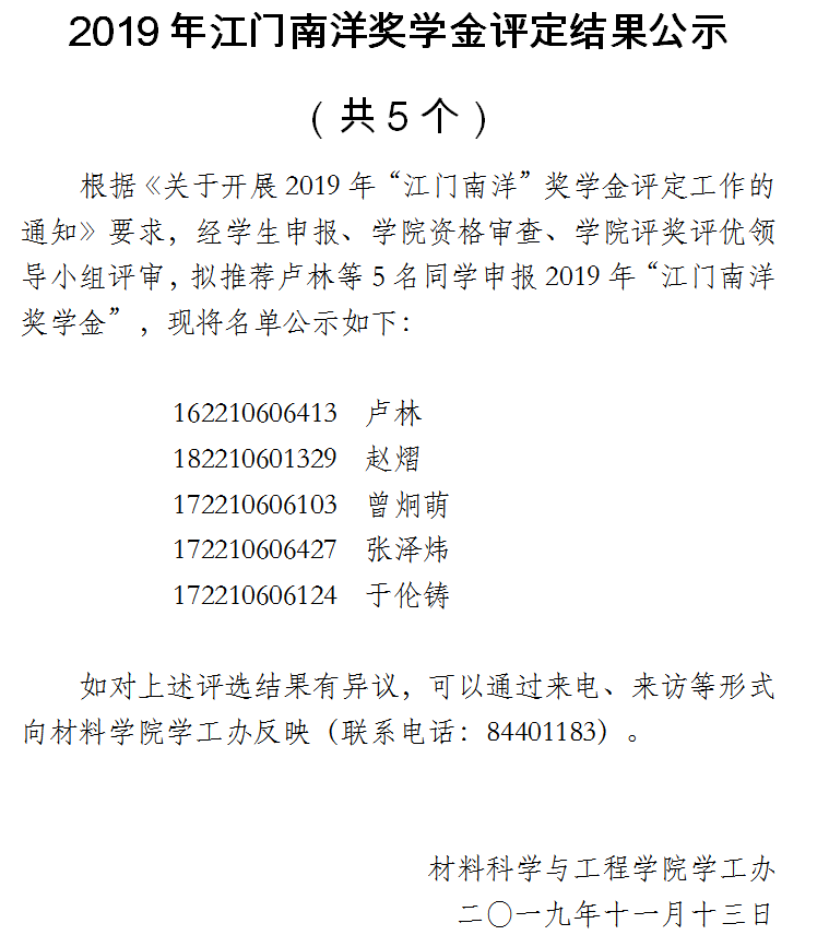 suncitygroup太阳集团2019年江门南洋奖学金评定结果公示