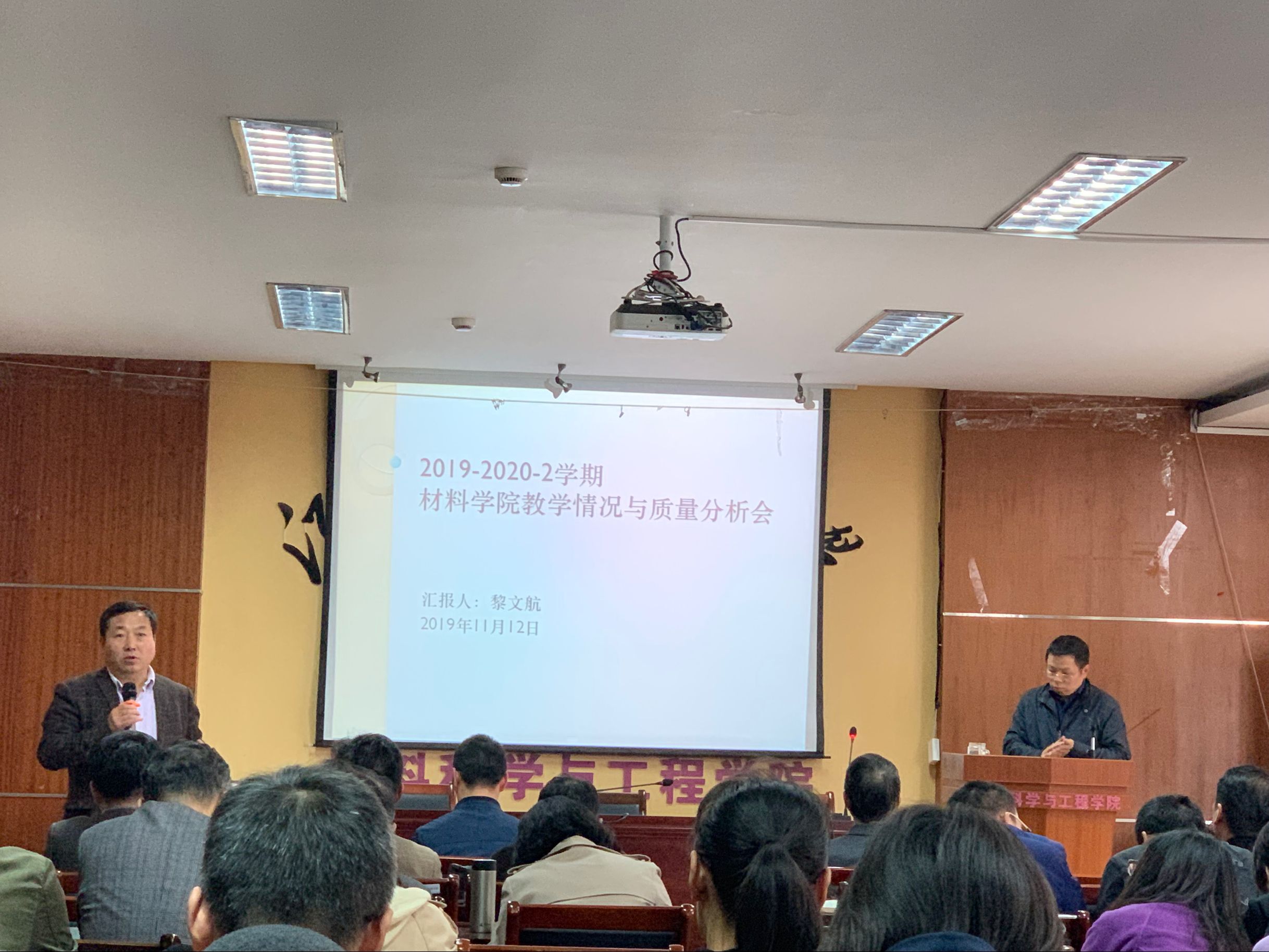 2019年11月12日下午,suncitygroup太阳集团在院报告厅召开2019-2020学年第1学期教学情况与质量分析会,全体院领导及全体教师参加。会议由公司党委书记祁凯主持,祁书记首先简要总结了今年学院在教学工作上取得的成果,对全体教师的努力表示感谢。副经理黎文航做了关于学院教学情况与质量分析会的报告。
