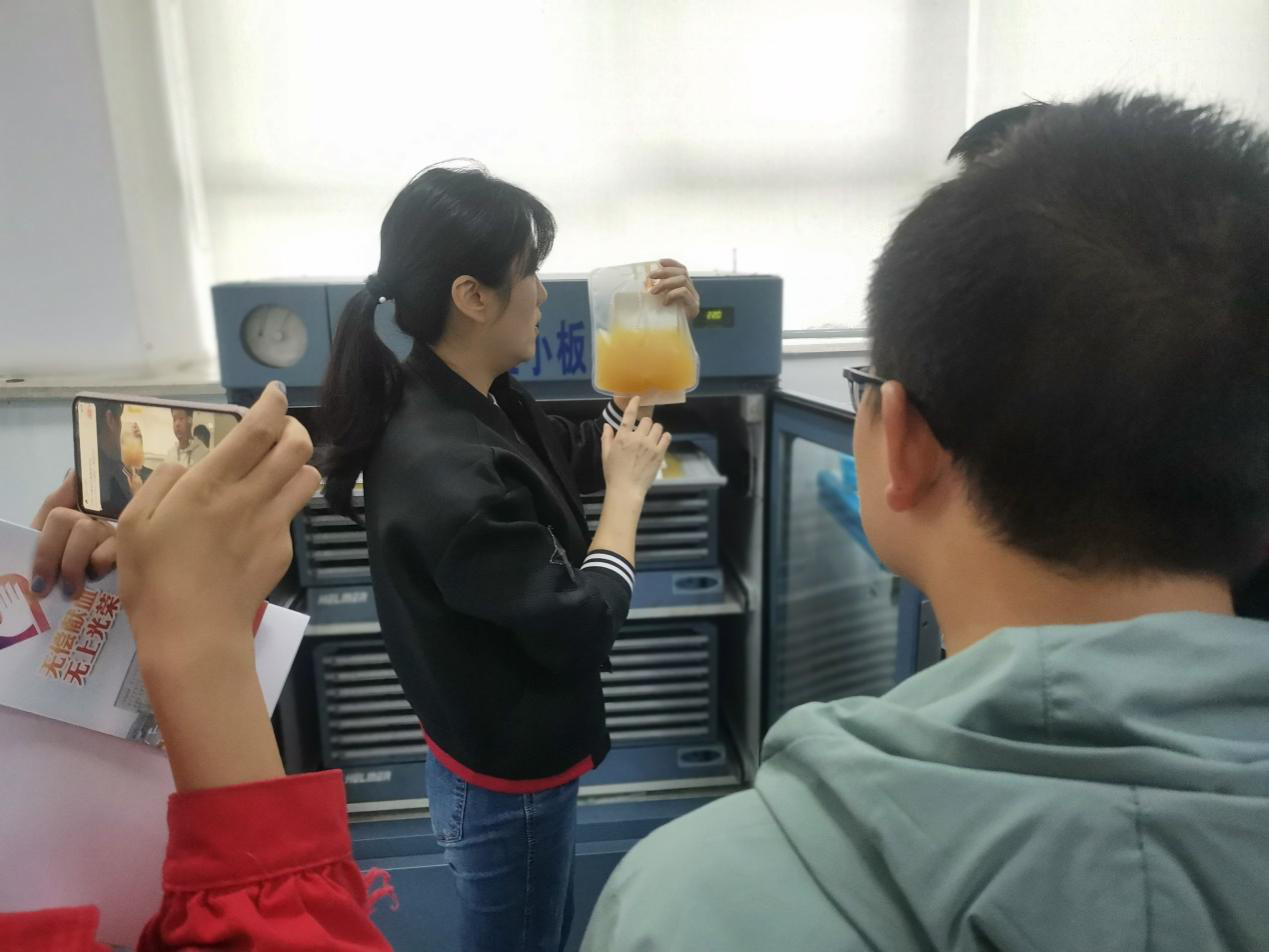 随后,高主任带领志愿者团队参观储藏室,悬浮少白红细胞储藏室,血小板储藏室等各项储藏室,并向志愿者详细讲解了各类物品的储存方式,以及适宜的温度。同学们深切感受到了医生这份工作的难度,以及样品保存遵循的严格原则,对无偿献血的工作人员表示崇高的敬意。