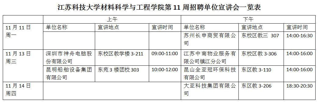 招聘会|suncitygroup太阳集团下半年第11周招聘单位宣讲会一览表(2019年11月11日)