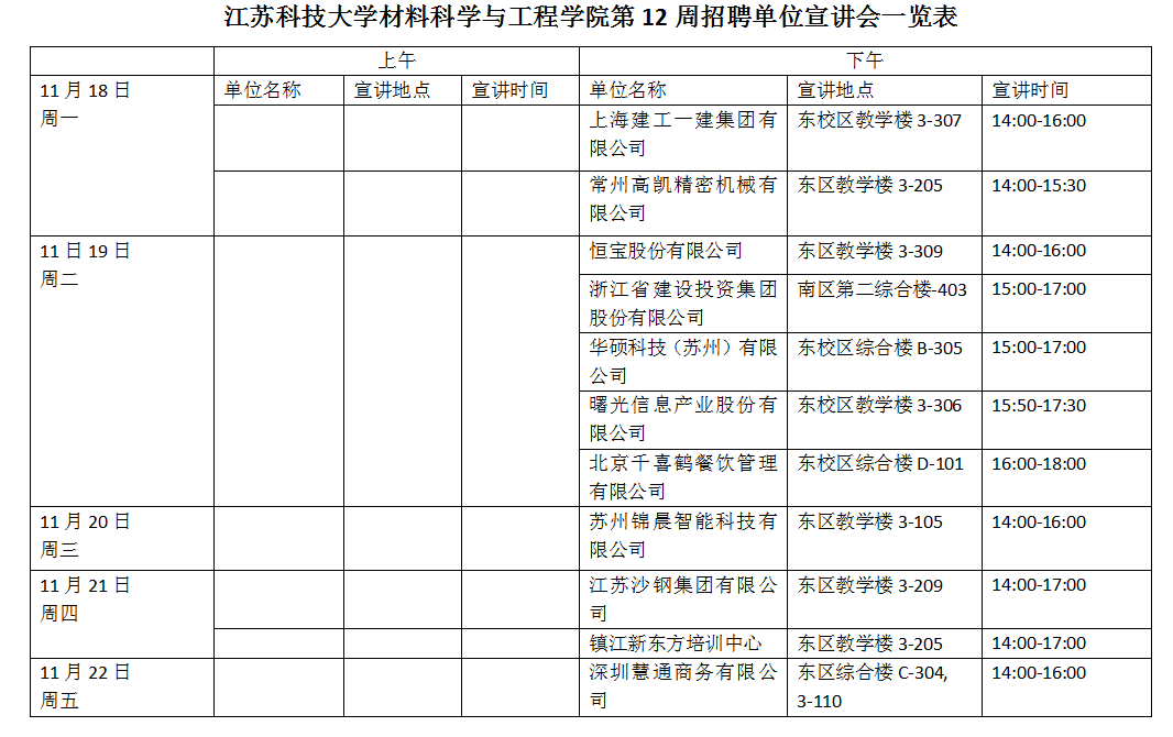 招聘会|suncitygroup太阳集团下半年第12周招聘单位宣讲会一览表(2019年11月18日)
