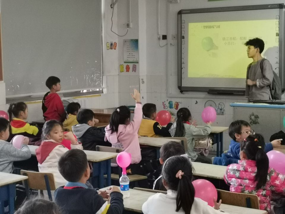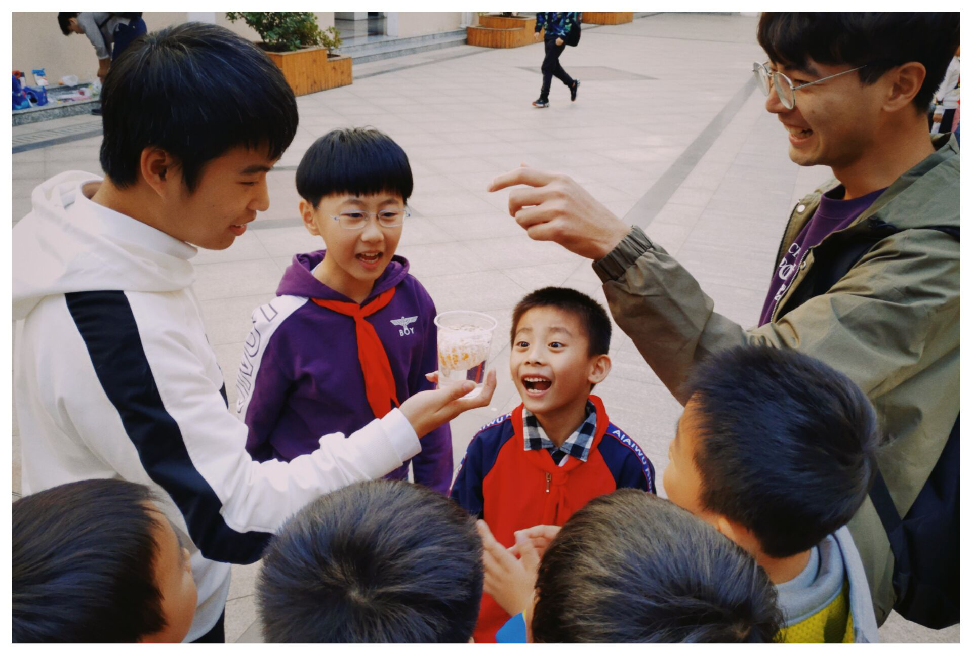 活动中,江科大suncitygroup太阳集团的员工们给镇江市实验小学的同学们带来丰盛的“科技大餐”。美丽的降雨云、可乐喷泉、塑料瓶吹气球、法老之蛇等实验,这些有趣的科技活动让小员工大饱眼福,耳目一新,实验过后,各组活动负责人给同学们答疑解惑,同学们积极参与,充分感受到了科学带来的快乐和魅力。通过科普知识小问答环节,涉及中国最大的岛屿是台湾岛、社会主义核心价值观等内容,在他们心中种下了一颗科技强国的种子。