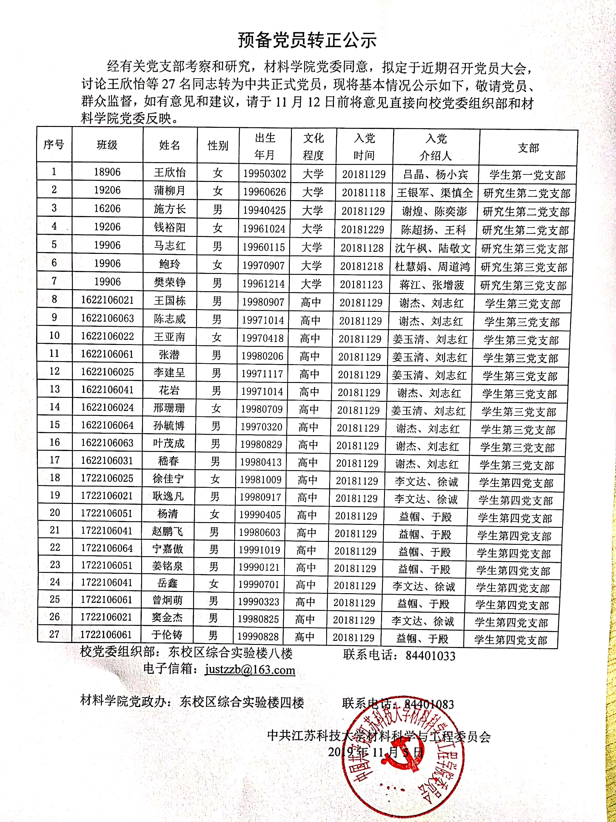 suncitygroup太阳集团2019年下半年预备党员转正公示