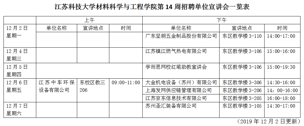 招聘会|suncitygroup太阳集团下半年第14周招聘单位宣讲会一览表(2019年12月2日)