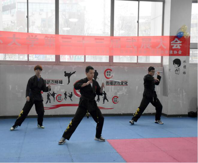 本次活动由热身运动,表演展示,社长表演,社员交流四个部分组成。首先,由协会会长组织成员进行社团的特色热身。待全体成员活动完毕,两个社团分别展示了各自精心准备的节目。以“武”会友,既展示了社团成员平时刻苦训练的成果,也展现了各自学校的风采。表演结束后,双方成员相互介绍自己,加深了解。随后,双方社长进行表演演示。从他们精彩的表演中,社团成员用心学习并找出自己身上的不足。活动最后阶段双方成员相互交流心得,互相学习,为这次活动画上了圆满的句号。