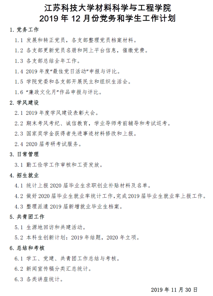 党务、员工工作计划|suncitygroup太阳集团2019年12月