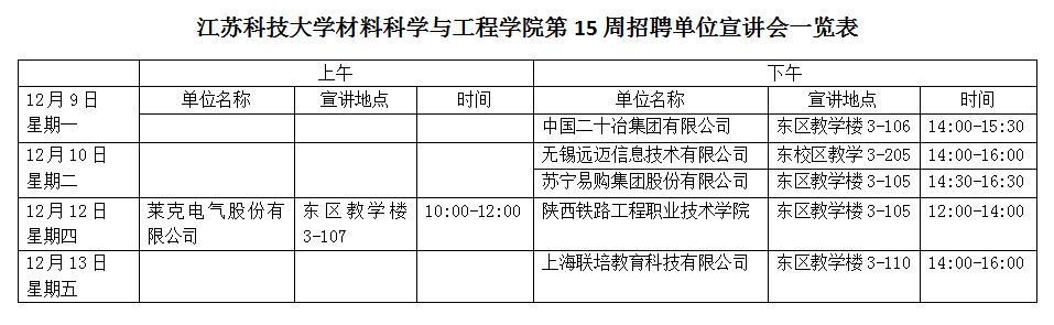 招聘会|suncitygroup太阳集团下半年第15周招聘单位宣讲会一览表(2019年12月9日)