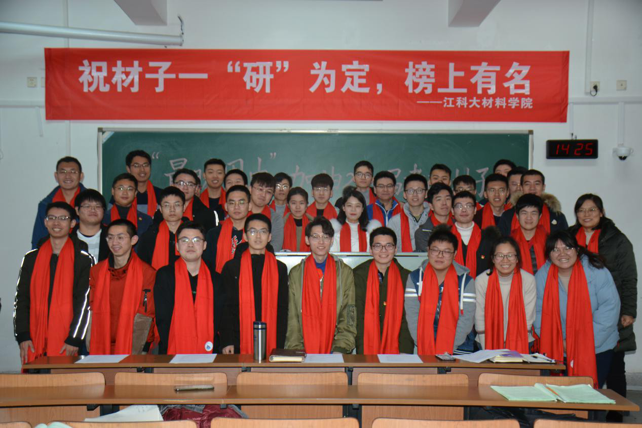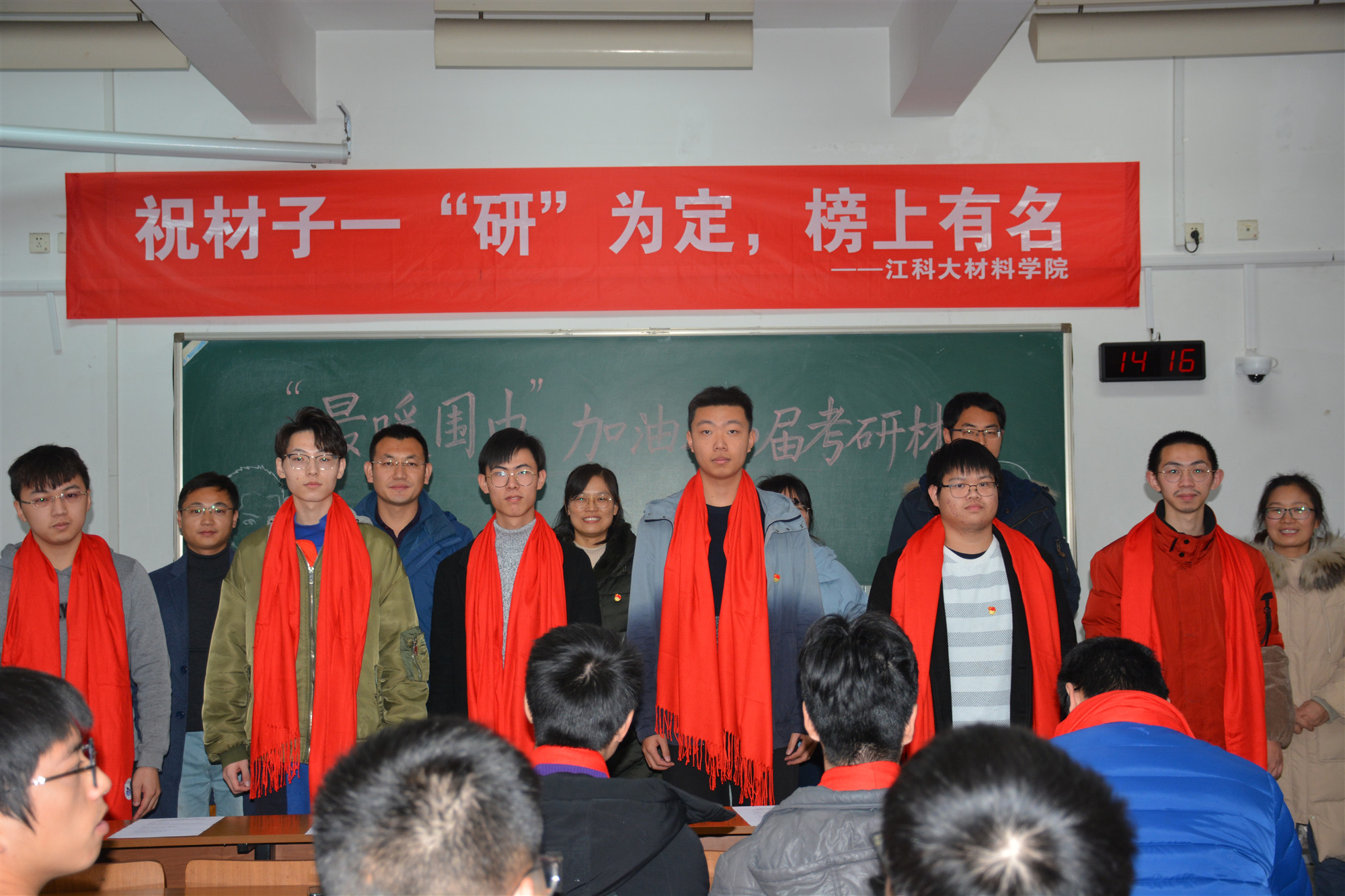 12月12日下午,suncitygroup太阳集团在东校区综合楼C-301开展“祝材子一‘研’为定,榜上有名”为主题的考研冲刺祝福活动。学院党委副书记赵莉、团委书记李文达、辅导员刘志红、雷锋、吕晶、张正栋一起为2020届考研学子送上“围巾”,为紧张的考研冲刺增添了一抹色彩。