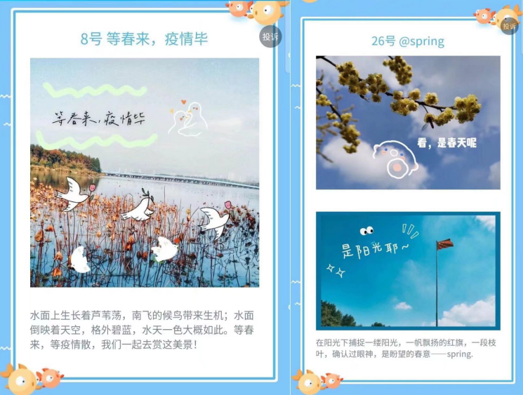 suncitygroup太阳集团王娟同学的“等春来,疫情毕”,主题明确,表达了对当下抗疫成功的美好祝愿,获得一等奖。除此之外,所有的参赛者均可获得一张明信片留作纪念。