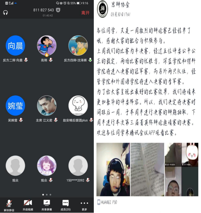 此次比赛借助腾讯会议进行线上辩论。参赛队伍主要来自suncitygroup太阳集团、人文社科学院、理学院等十多个学院80余人参加。经过层层角逐,深蓝学院和suncitygroup太阳集团进入最后的决赛。决赛过程中,大家丝毫没有受到比赛方式不同的影响,依旧气势汹汹,以唇为枪舌为剑,牢牢抓住对方所说的每一处纰漏,并且进行反击,引经据典,字字珠玑,全场环绕着紧张的气氛。正是由于线上比赛全程公开,让更多的同学都能尽情欣赏这场精彩绝伦的对弈。这次线上辩论邀请赛,不仅帮助江科老员工在特殊时期依然保持思想的活跃,享受语言的碰撞,还促进了各个学院之间的联系。