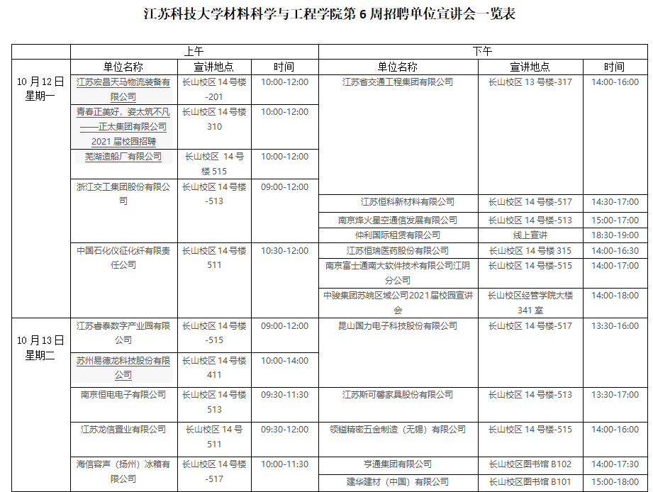 suncitygroup太阳集团第6周招聘单位宣讲会一览表(2020年10月12-17日)