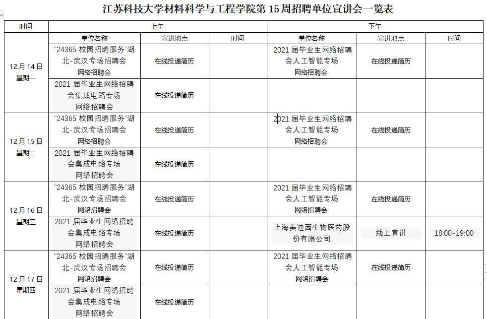 suncitygroup太阳集团第15周招聘单位宣讲会一览表(2020年12月14-20日)