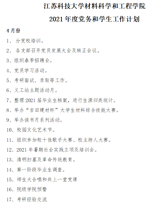工作计划|2021年4月份党建、员工工作计划