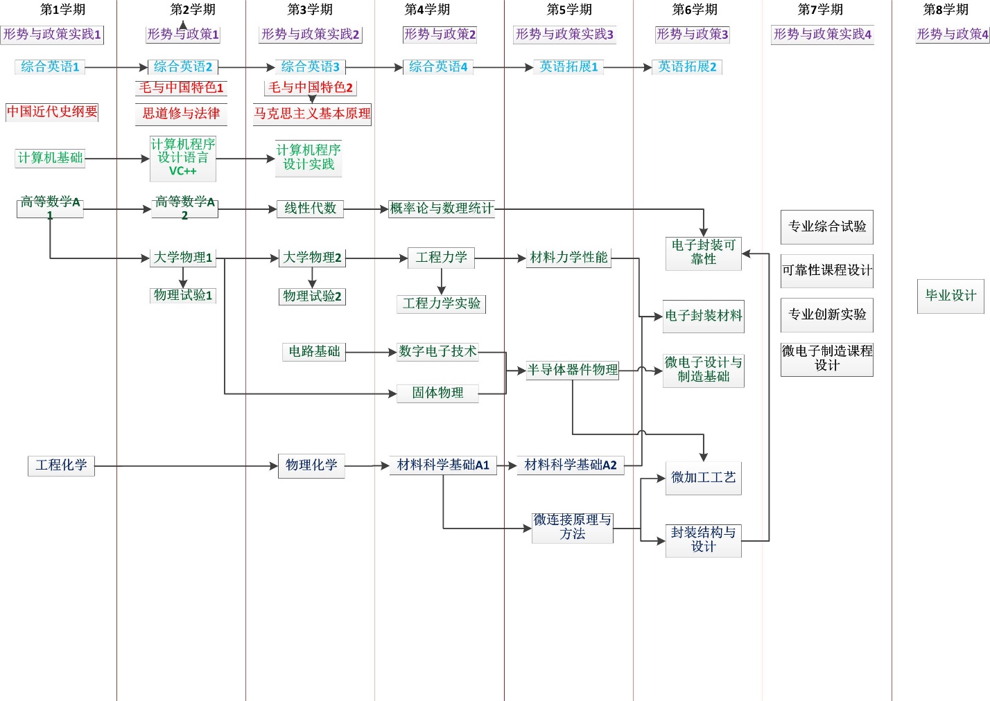 专业核心知识领域:固体物理、半导体器件物理、材料分析测试方法、传热与传输原理、数字电子技术、电路基础、集成电路设计与制造、微连接原理与方法、微加工工艺、电子封装可靠性、电子封装结构与设计、电子封装材料。