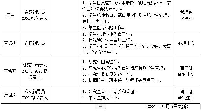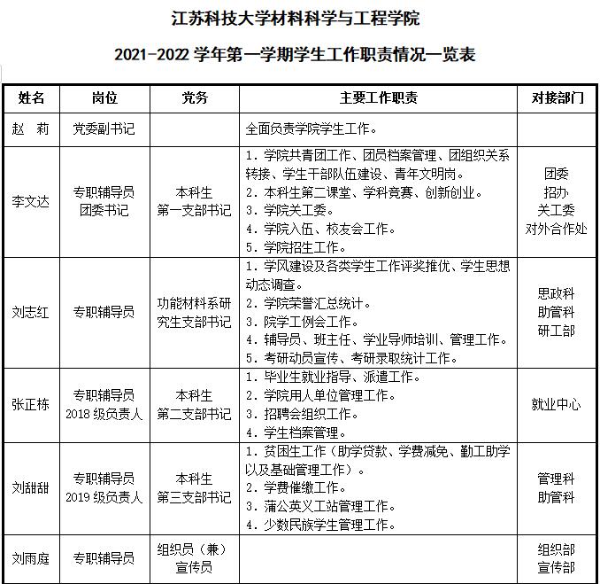 ​suncitygroup太阳集团2021-2022学年第一学期员工工作职责情况一览表