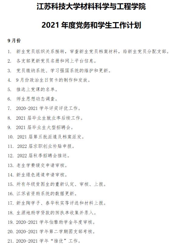工作计划|2021年9月份党建、员工工作计划
