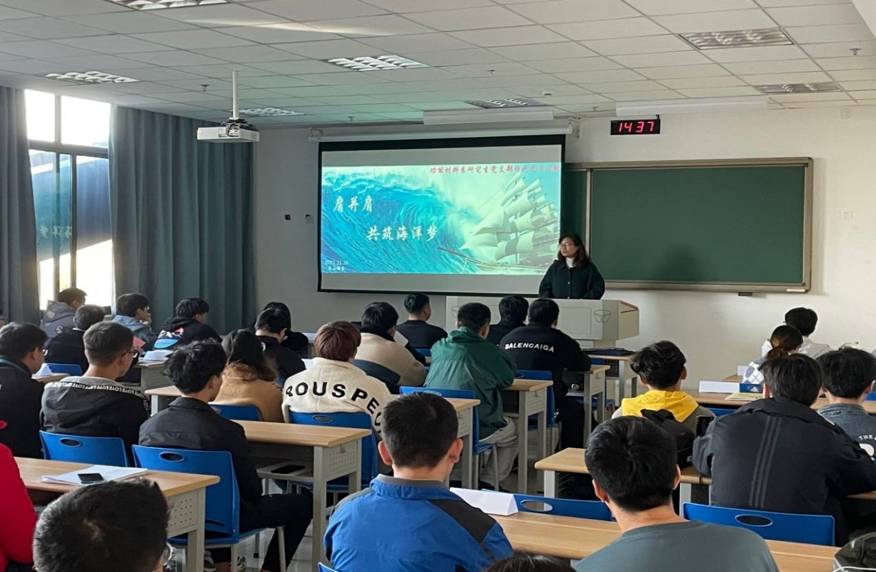活动伊始,支部书记刘志红作做活动动员,带领全体党员重温了本次活动的初心,表达了功能材料研究生党支部成员与本科生“肩并肩”走下去的决心,希望每位同学都能学业有成,为“共筑海洋梦”努力奋斗。