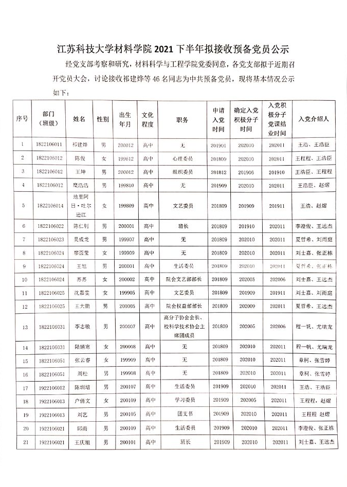 suncitygroup太阳集团suncitygroup太阳集团2021下半年拟接收预备党员公示