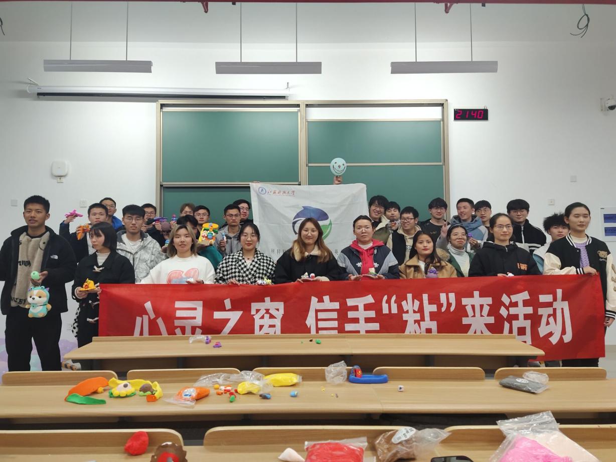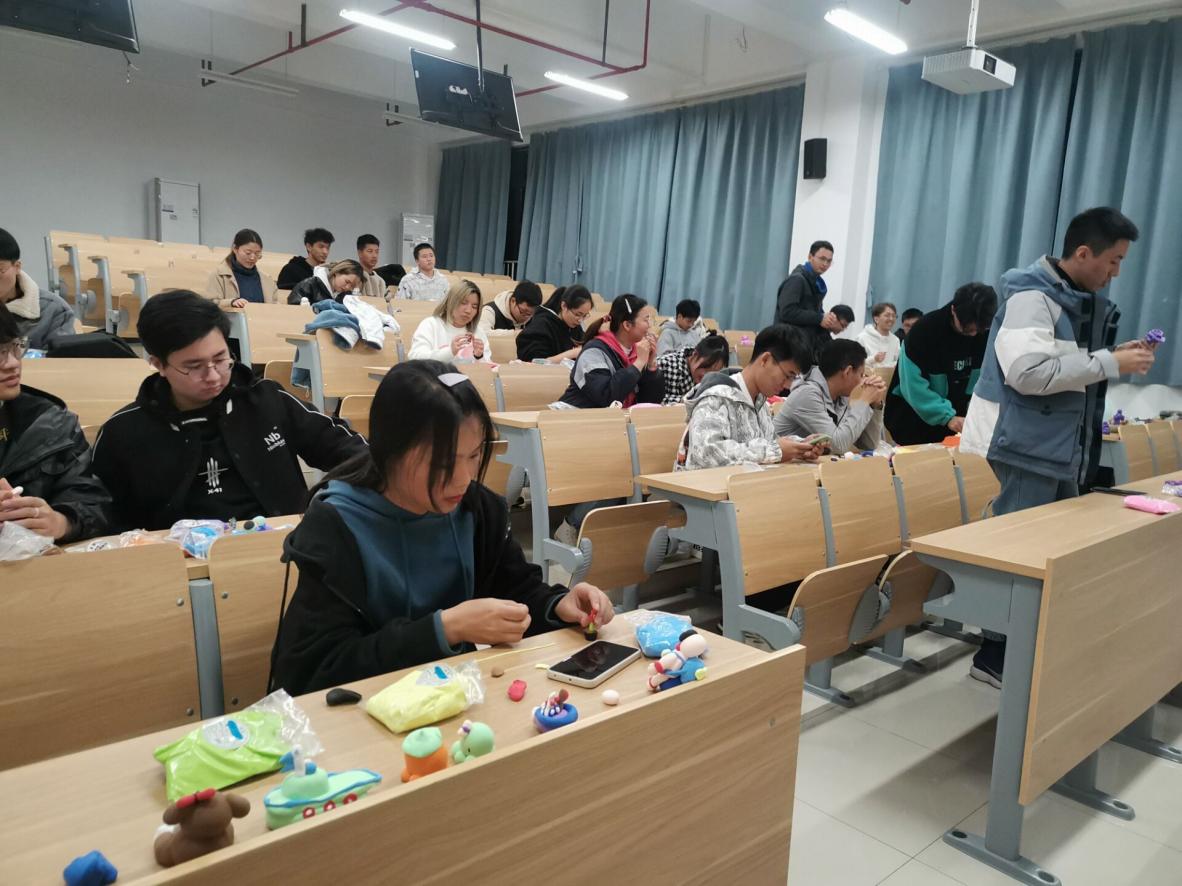 此次活动共有3个环节,从知识竞答、团队配合、动手实践出发,利用气球、粘土等道具开展成语接龙,趣味游戏,粘土制作。第一环节为成语接龙,此环节不仅考验应变能力更体现个人的知识储备和文化功底。第二环节趣味游戏,参与成员两两组队、背靠背夹住气球,然后带到指定位置后将气球扎破。游戏不仅考验体力和配合默契度更需要一定的胆识,男生们在现场蓄势待发,女生们也跃跃欲试,在成员的配合下,所有人顺利完成比赛。最后就是备受期待的粘土制作比赛,比赛第一轮是“你说我捏”,参与成员根据主持人的描述捏出物体的样子,此环节制作中要不用手去揉、搓、捏、贴、插、撕、刻、压来塑造形状,不仅要运用手部肌肉动作,还体现出手与眼的协调能力,非常考察个人的动手能力和细心程度,同学们抓住事物的特征,用最简单的粘土捏出生动的模型;第二轮是“随心所欲”,同学们可以自由发挥,将自己想要展现的事物用粘土尽情表现出来,通过不同颜色的创意组合,不断启发想象力和创造力,在粘土制作过程中同学们彼此合作,勇于交流自己的想法,创作出许多创意性作品。