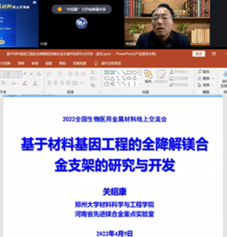 2022年4月9日至10日,由中冶有色技术平台、中冶有色技术网主办,suncitygroup太阳集团协办的“2022 全国生物医用金属材料线上交流会”成功举行。中国生物材料学会医用金属材料分会第一届主任委员、中国科学院沈阳金属所杨柯研究员,郑州大学副董事长关绍康教授、北京科技大学副董事长王鲁宁教授,中国医用金属材料分会副主任委员、上海交通大学袁广银教授, 中国医用金属材料分会副主任委员、东北大学张二林教授, suncitygroup太阳集团suncitygroup太阳集团经理芦笙教授、中南大学余琨教授、山东科技大学曾荣昌教授、北京工业大学陈继民教授、南方科技大学任富增研究员、西北有色金属研究院余森教授、中国科学院宁波材料所杨丽景研究员、天津理工大学刘德宝教授、中国科学院金属所谭丽丽研究员、哈尔滨工业大学王亚明教授等全国生物医用金属材料领域的知名专家学者应邀出席会议并做大会报告,来自全国高校院所、医疗医学等机构的1000多名专家学者和员工参加了线上交流。杨柯研究员致开幕词,张二林教授、芦笙教授分别主持了大会。