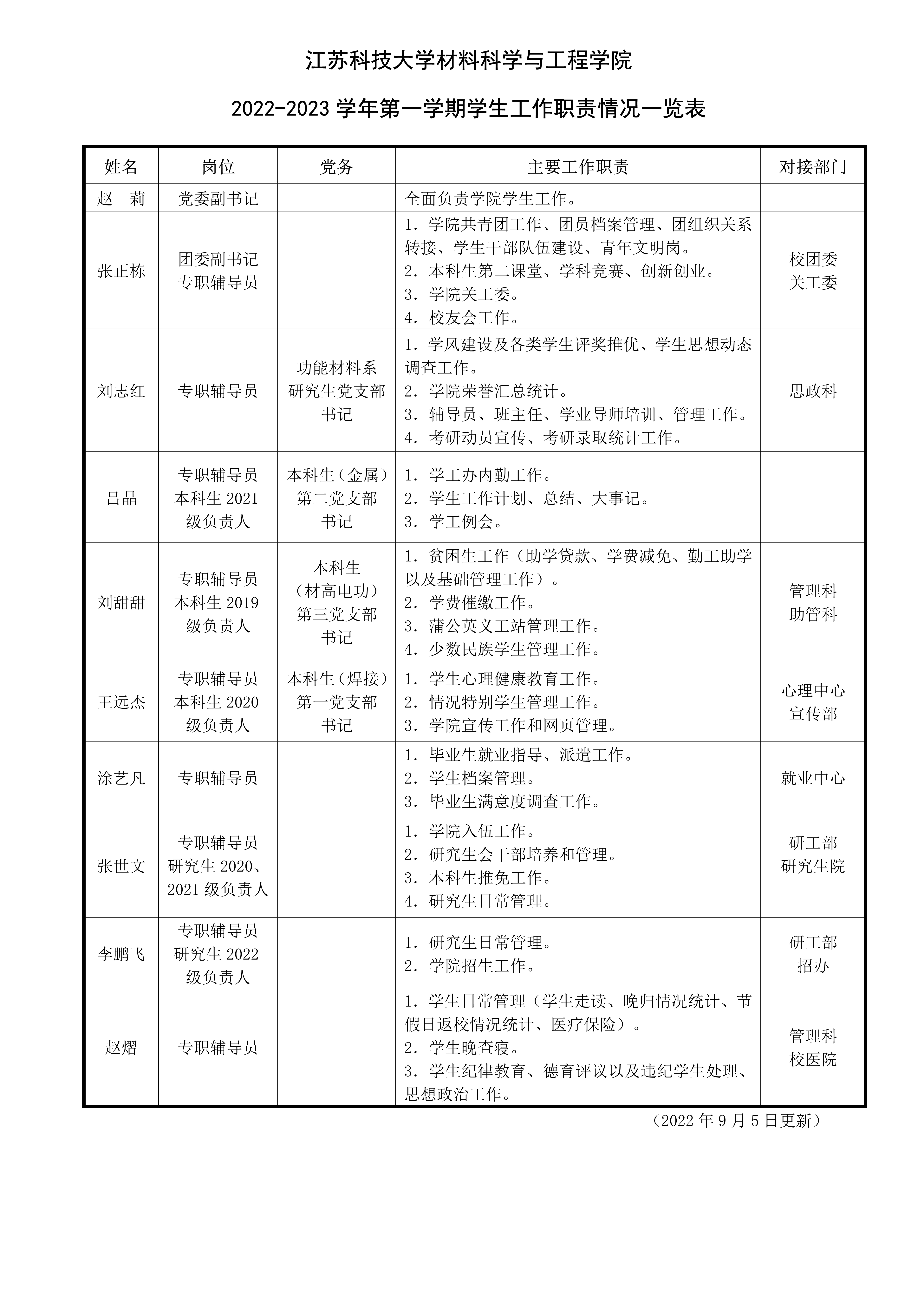 suncitygroup太阳集团2022-2023学年第一学期员工工作职责情况一览表