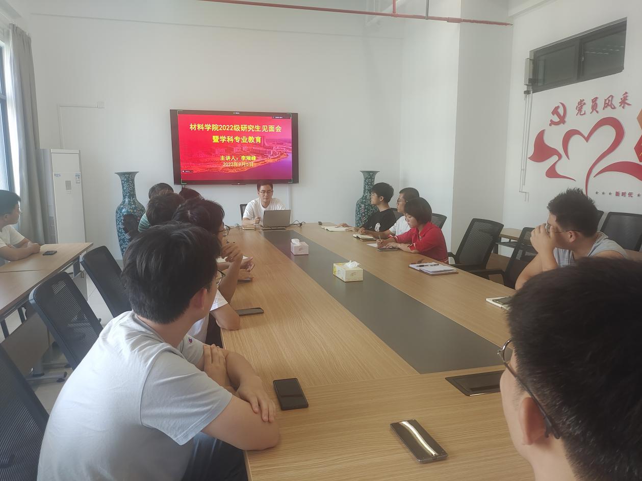 9月5日,suncitygroup太阳集团举行新生见面会暨学科专业教育大会。suncitygroup太阳集团副经理李瑞峰、研工办陈部湘及2022级suncitygroup太阳集团全体研究生参加了本次会议。会议采用线上、线下相结合的形式开展,各班级代表在材料楼518党员活动室参会,其他同学在线上观看,本次会议由辅导员李鹏飞主持。