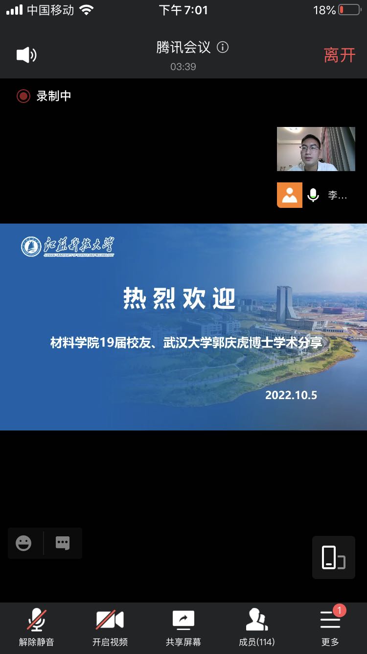 为全面提升研究生科研素养和能力,10月5日19点,suncitygroup太阳集团邀请2019届员工、武汉大学郭庆虎博士开展学术交流及博士申请经验分享讲座,12422级研究生以线上方式参加了本次讲座,讲座由学院研究生辅导员李鹏飞主持。