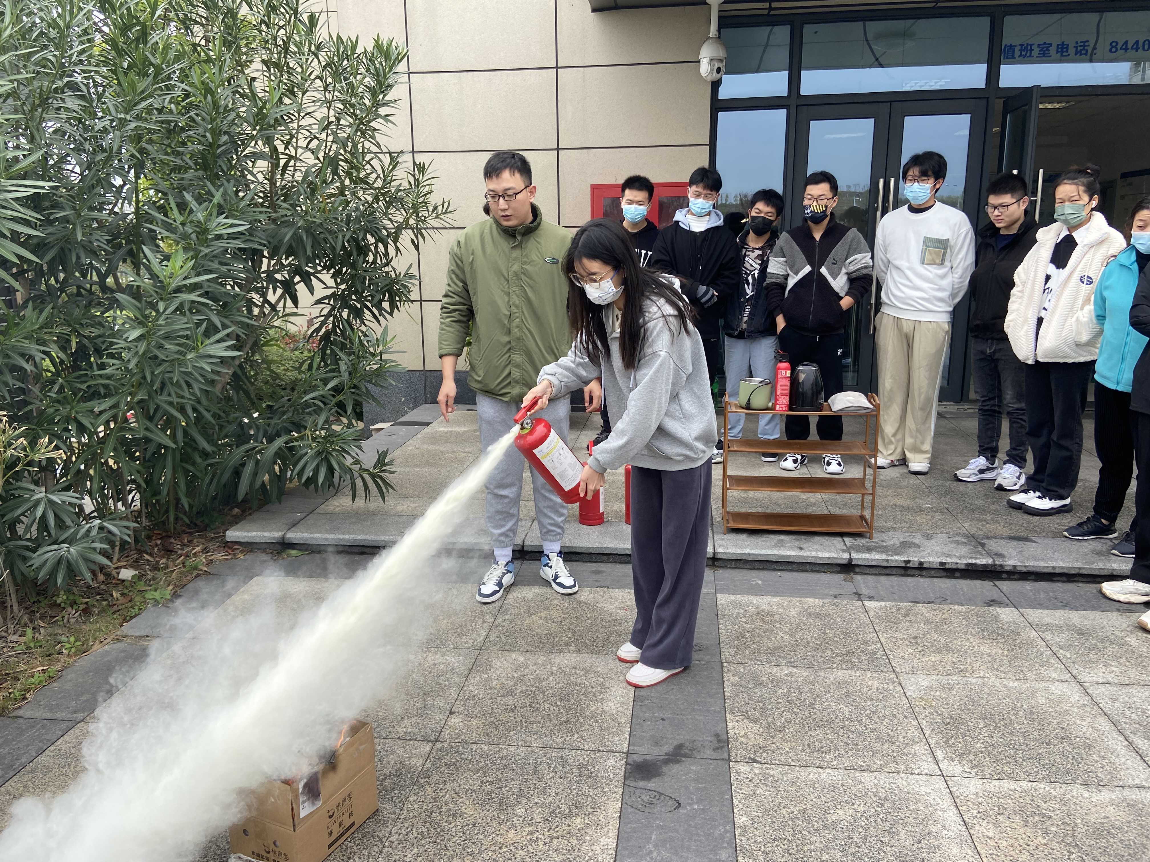 演练开始前,张老师为同学们详细介绍了干粉灭火器、水基型灭火器、二氧化碳型灭火器以及车载型灭火器,讲述不同类型灭火器的优缺点、主要的使用场合以及注意事项,教会同学们针对不同突发情况如何正确选择灭火器。随后,张老师为同学们演示了灭火器的正确使用方法,并指导员工实际操作,体验灭火过程。活动最后,张老师强调学校安全制度,严厉禁止宿舍吸烟以及使用违禁电器,从生活角度出发讲述了违禁电器对身体的危害,切实关心同学们的生活状况。