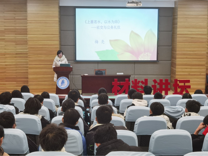 梅亮老师以“上善若水,以水为师”为主题,用《论语-八佾篇》中子曰:“人而不仁,如礼何?人而不仁,如乐何?”一句引起同学们对礼仪的思考。梅亮老师首先表示作为员工干部,要考虑到工作对象的需求,包括受欢迎、受尊重及舒服;可以接受到立刻或即时的服务;感受到被理解、被感激、被同学记得。这些需求需要员工干部用恰当得体的方式解决。
