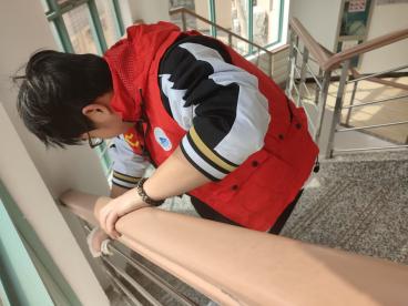 组员们分工协作,合理分配各楼层的任务,仔细擦洗着楼梯的污渍,确保每一个角落都干干净净。与此同时,另一组志愿者们在校园里“精挑细选”,找到白色垃圾,让绿色更加盎然。活动中,各小组成员都体现出了团结协作的实践精神,真正做到事事有人做,人人有事做。志愿者们一起参与到本次活动中,方便同学们上下楼梯的同时,也为梦溪校区环境保持整洁做出了贡献。