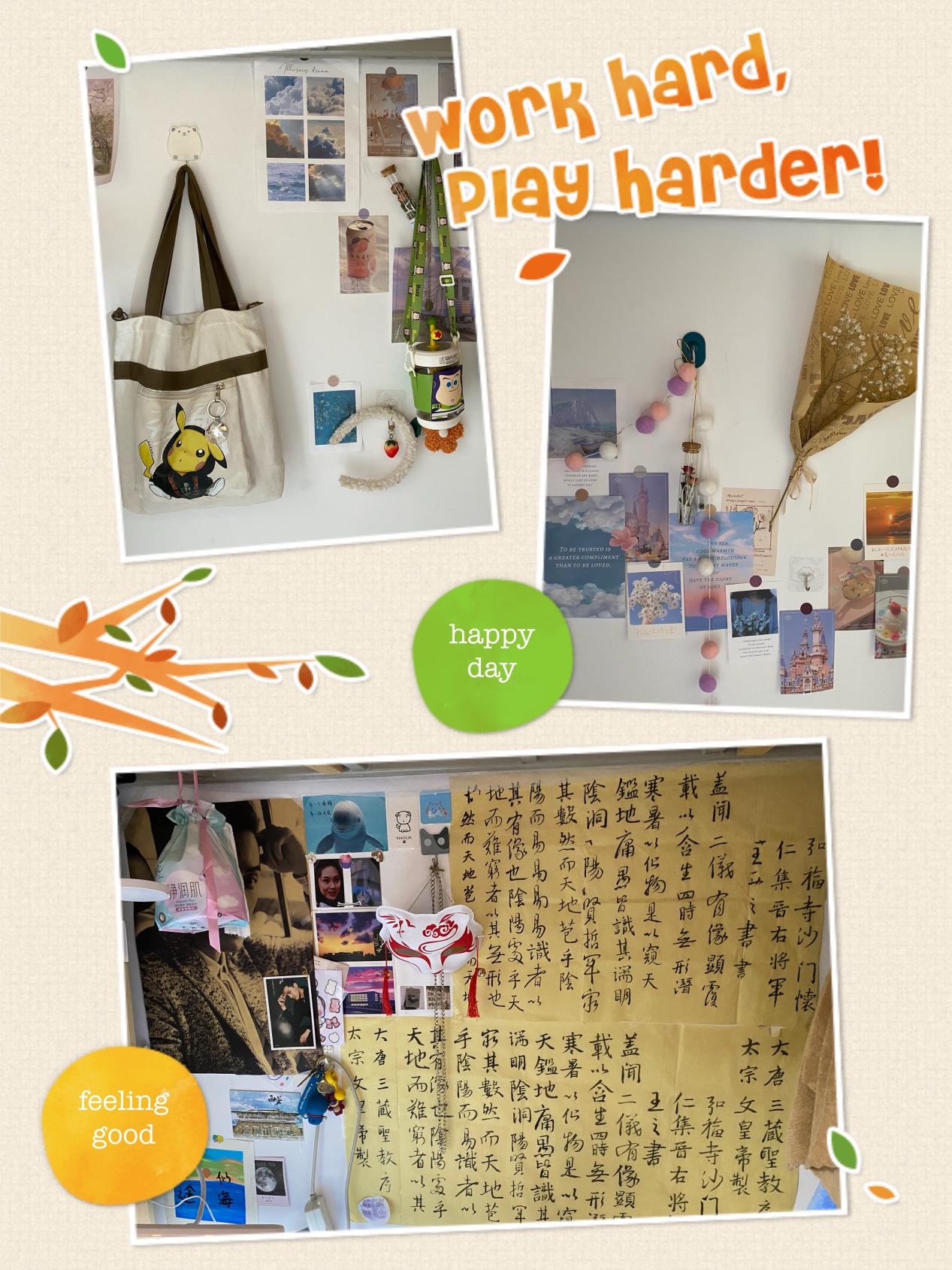 大赛开始后,各年级本科生和研究生同学积极参加,对自己的宿舍进行美化。大家精心准备,仔细装扮,认真打扫,房间中增添了许多“美丽的风景”。一幅幅优雅的毛笔字装点宿舍,尽显材料学子浓厚学风,一张张生活照组成的照片墙记录多姿多彩的点滴生活,干净整洁的环境体现公司学子良好的生活习惯。