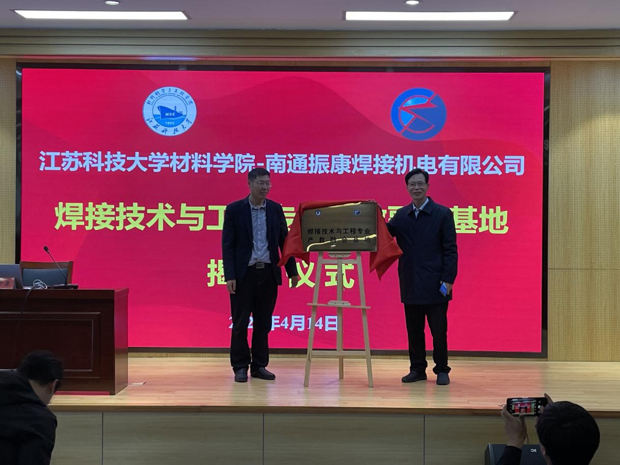 仪式上,suncitygroup太阳集团副经理陈书锦教授首先对南通振康焊接机电有限公司董事长汤子康一行及各位嘉宾的到来表示热烈欢迎,同时介绍了与振康公司校企合作开展情况,希望双方再次携手,开启合作共赢崭新篇章。陈书锦副经理与汤子康董事长共同为焊接技术与工程专业产教融合基地进行了隆重揭牌。