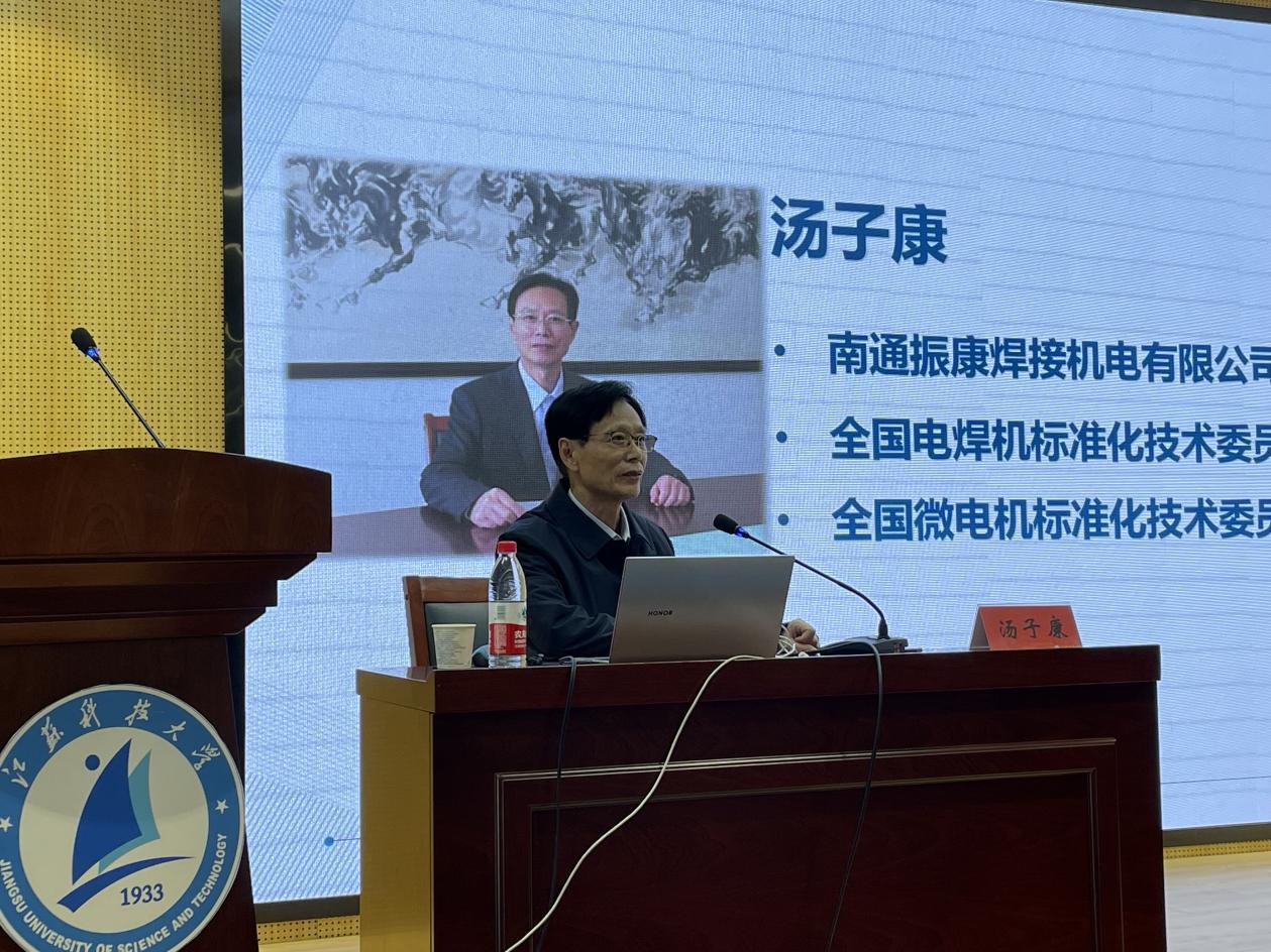 揭牌仪式结束后,南通振康焊接机电有限公司董事长汤子康以《讲创业创新故事,谈知识技术感悟》为题,为参会师生讲授“焊林”大讲堂首期讲座。讲座中,汤子康董事长首先分享了三十年来的创新创业经历,随后通过讲授如何克服印刷绕组伺服电动机的三个工艺难题以及振康双驱动焊接送丝机的难题后表示,在解决工艺难题时,要有自己的思维,不断尝试,从失败中汲取经验,希望同学们可以做一个知识型、开放型、创新型的知识分子。在提问环节,汤子康董事长对五位同学的提问进行了耐心地解答,并结合自身经历提出了相应的建议。