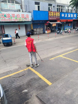 在炎炎烈日之下,社区中出现一抹鲜红,那是志愿者身穿红马甲在社区里进行文明引导。志愿者们在四牌楼街道社区工作者的指导下,针对随地吐痰、随手扔垃圾、乱闯红灯、违规停车等不文明行为进行了规劝与引导。工作人员同心协力,相互配合,出色地完成了社区美化活动。