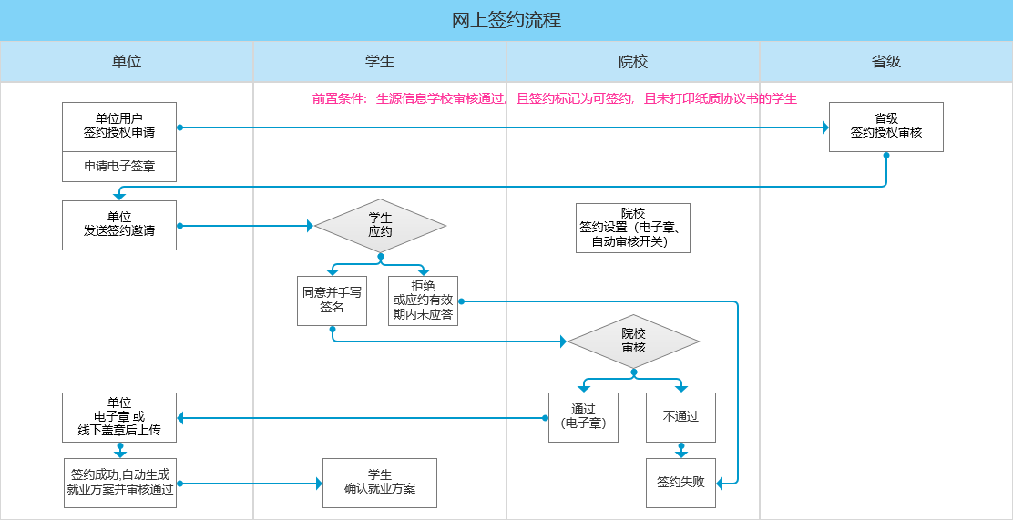 所有签约审核的流程都是学院-集团-省厅,有一个过程,系统会显示进度。