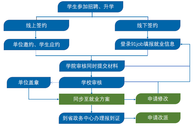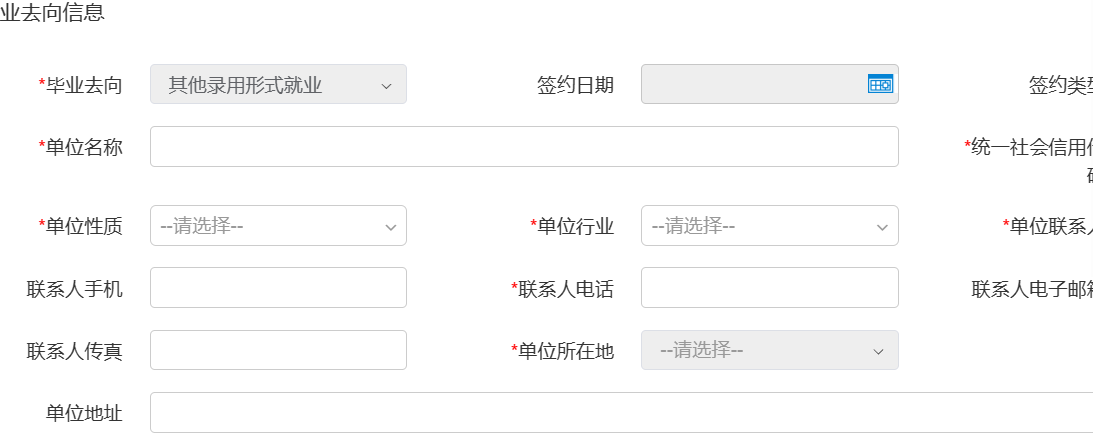 毕业去向:选择签订就业协议形式就业或者劳动合同形式就业;