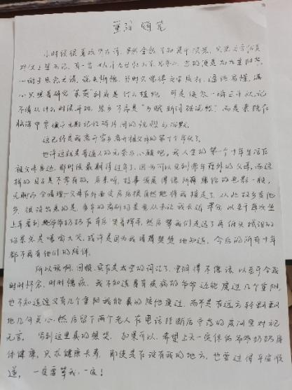 10月23-25日,义工站的同学们通过一封封的信件,向家中的老人传达自己的关怀和思念。或是嘘寒问暖,或是回忆往昔,或是真情流露,字里行间充盈着一个孩子对于祖辈的深切关心和崇高敬仰。信的内容虽有长短,文字各有特色,但随信件一同传达出的真挚情感却同样的美好、永恒。